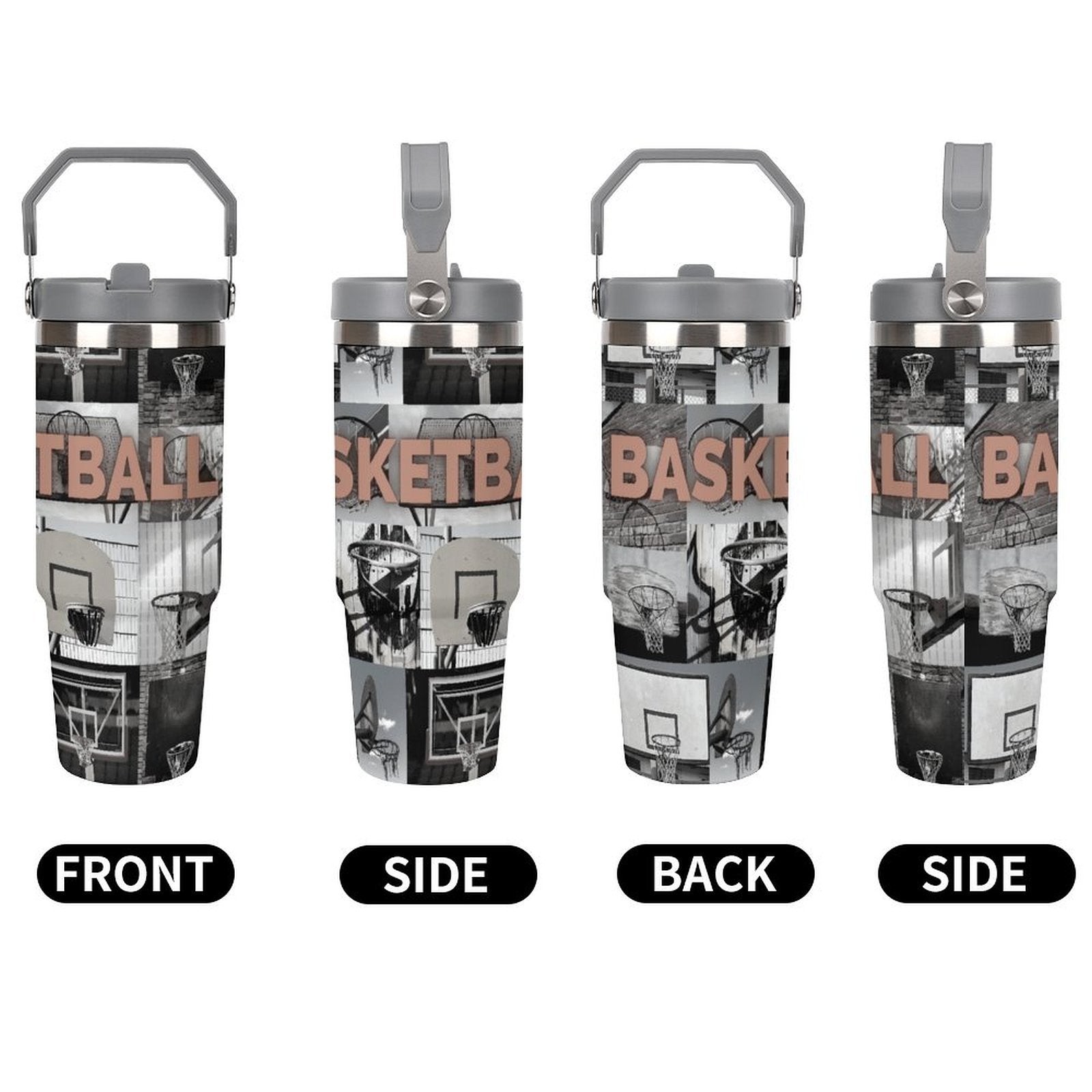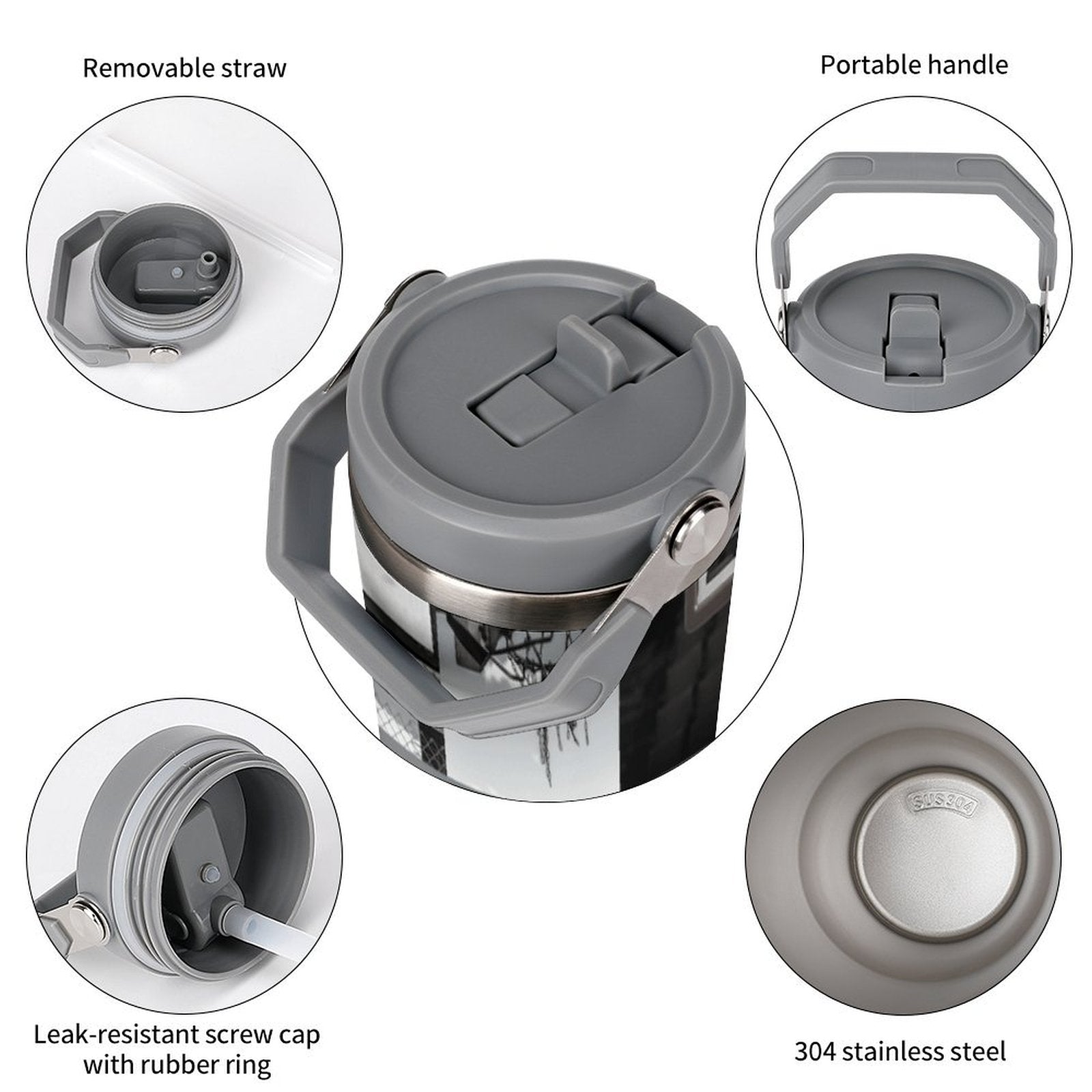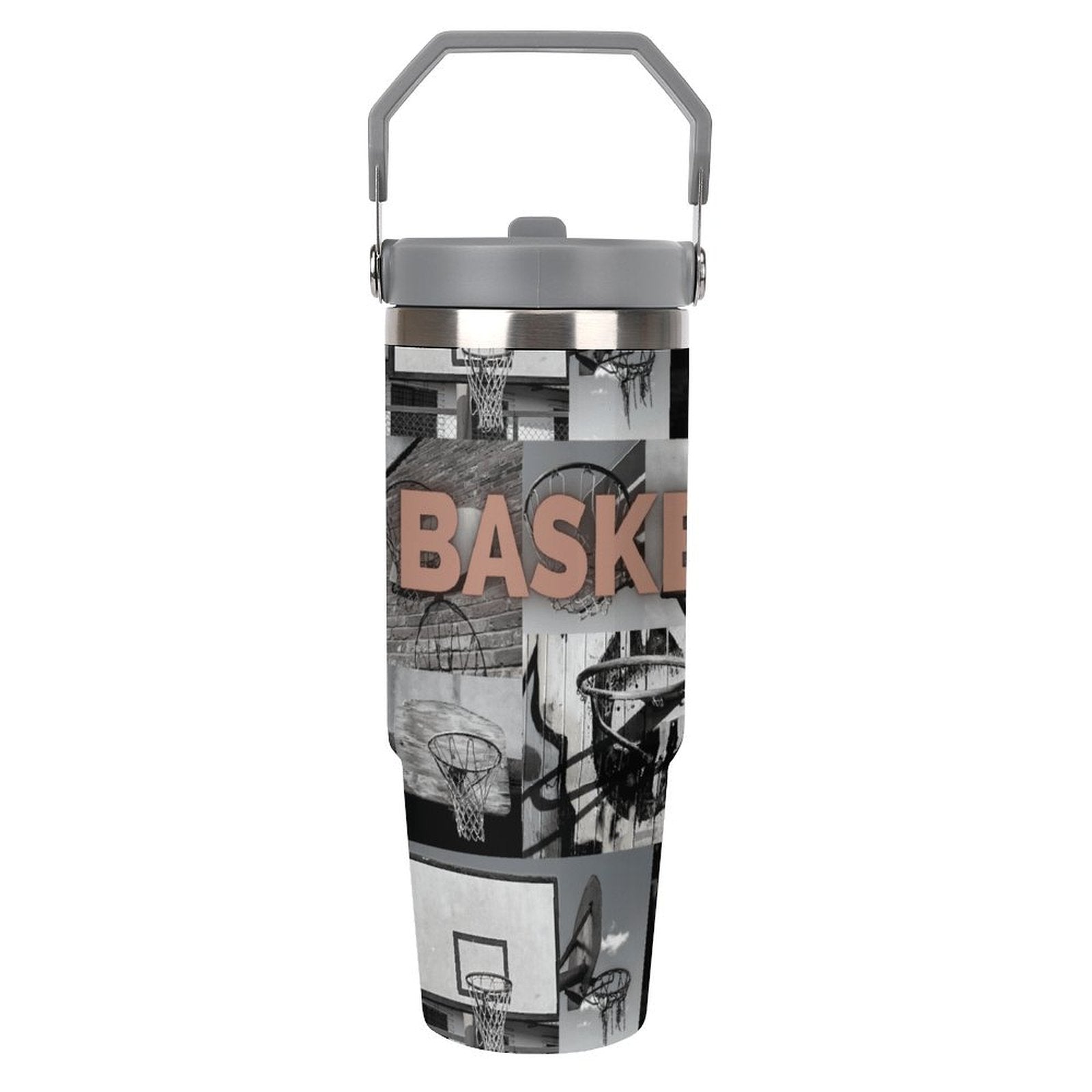 • Made of premium stainless steel, durable and non-toxic. • Flip straw lid design, convenient to open and close. • Features a top handle, makes it easy to carry. • Double wall insulation keeps drink warm or cold. • Capacity: 30 Oz, large capacity, suitable for a variety of occasions. • Hand wash ONLY with soapy hot water.