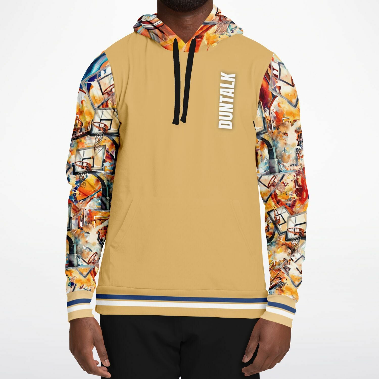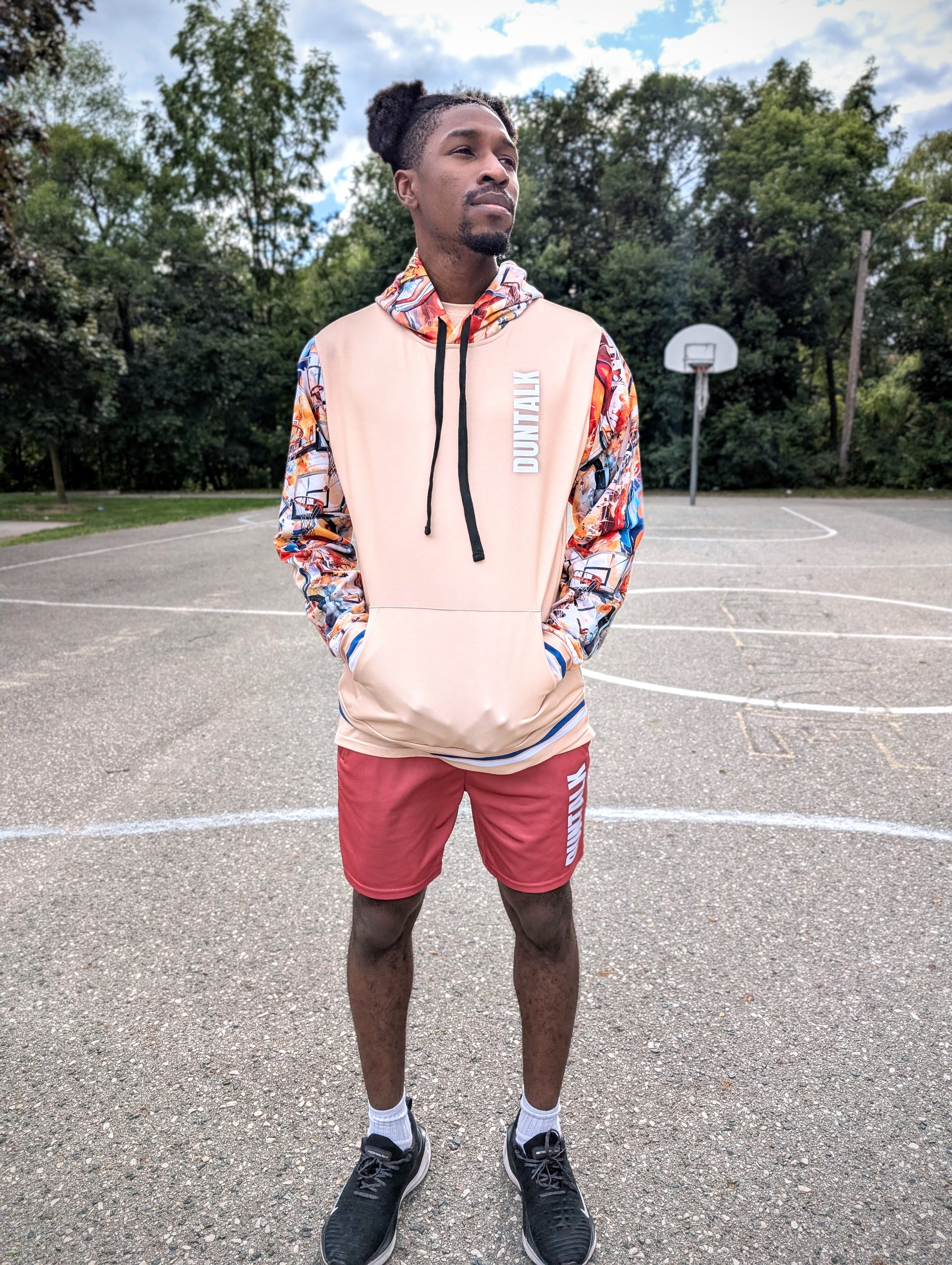 This hoodie ain’t quiet — it’s got energy in every stitch. With full-court artwork blazin' across the sleeves and hood, it’s a tribute to the grind, the game, and every shot taken when no one’s watching. The front hits clean with a neutral tan and bold DUNTALK print — perfect balance between loud hustle and calm confidence.